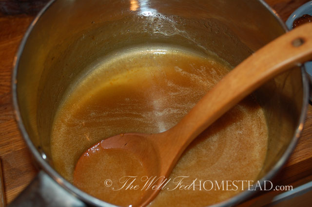 5. Let the honey caramel sit for a bit, as it will be really hot (you don’t want to work with super hot caramel–trust me ;)).