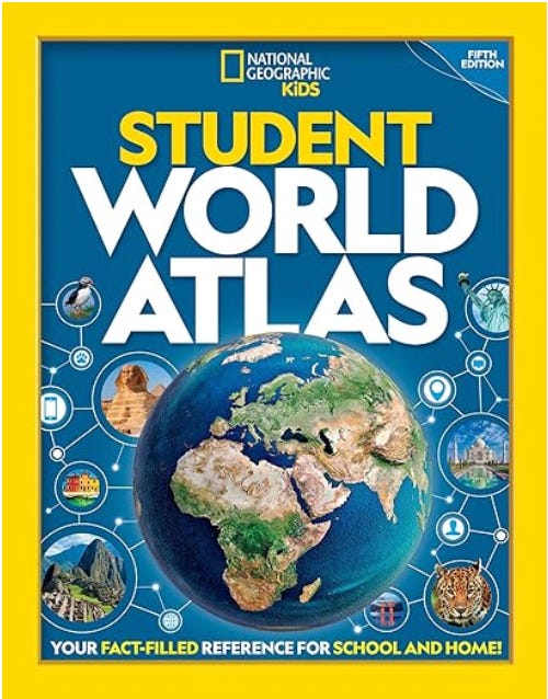 This is a good basic atlas, with some details about each state and country. It is not as detailed and interesting for young children as many of the other books on this list.