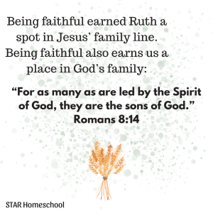 Ruth’s faithfulness is what set her apart. God has always been inviting the faithful to join His family, and the invitation remains open to anyone who will walk by faith in Him. (Read Romans 1:17 for encouragement)