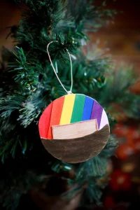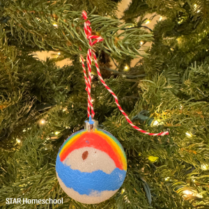 The symbol for this day is an ark and a rainbow. Ours is a frosted white ornament that was painted on one side with an ark, and on the other side with a rainbow. See my site for more ideas.