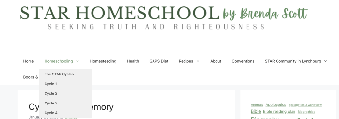 First, head to the cycle you’d like to use this year. You can find the cycles at the top of the page, under Homeschooling.