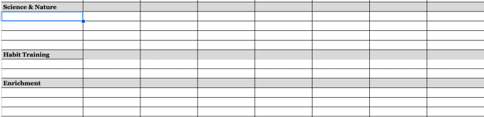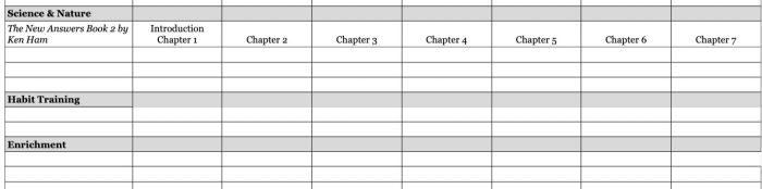 This has helped a lot of people, but overwhelmed others–who have told me that they liked the long spreadsheets with all of the resources. Because of that, I’ve decided to start including both: the long spreadsheet with all of the resources listed, by subject and form (for example, a long spreadsheet full of every single science & nature book for the cycle, sorted by form, and then a history spreadsheet, etc.) and also, the spreadsheets with a single book on them, like this: