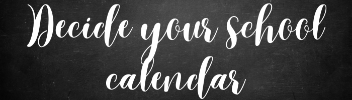 Now, decide when you will schedule your twenty-eight weeks of school. Try to choose weeks when you have at least four days to homeschool. Make sure to allow for ample holiday break time, but not so much that your children become bored and start asking for school like mine do!