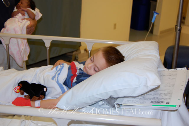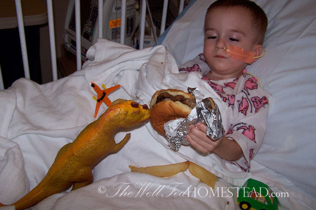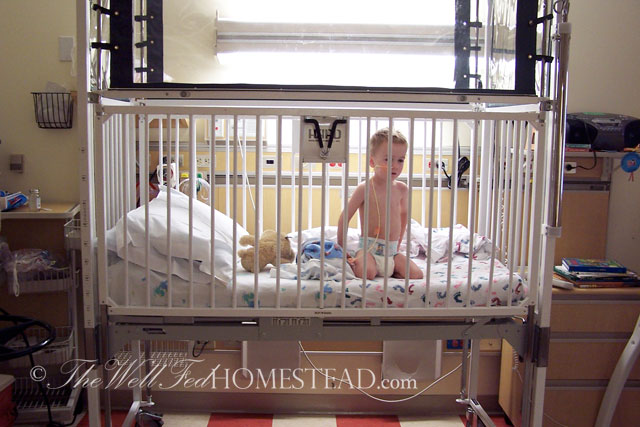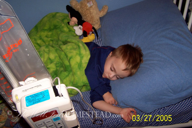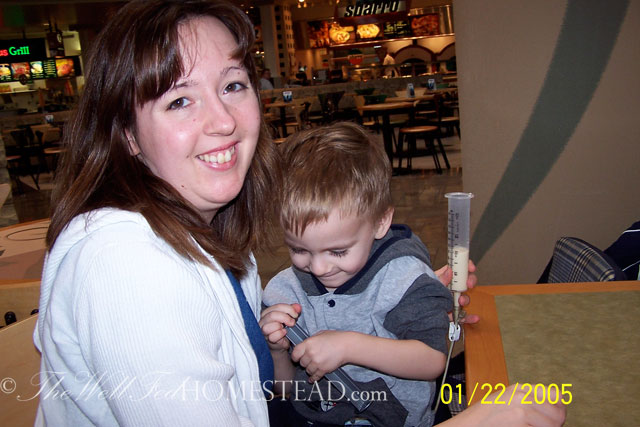 He was in the hospital A LOT. He had tons of blood work done as well as barium studies. During the year 2004 (between the ages of 2 and 3), he had 27 visits to his doctor’s office, plus hospital visits, plus visits to a GI specialist (not included in those 27 visits), plus at least that many phone consultations with dietitians. Nobody could figure out why he wasn’t growing.